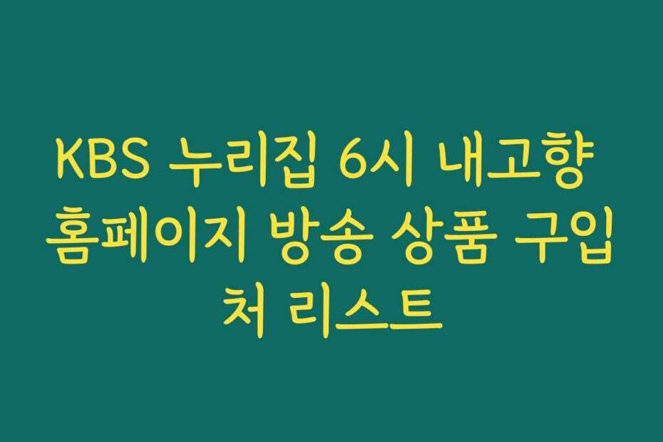 😰 KBS 누리집 6시 내고향 홈페이지 방송 상품 구입처 리스트 때문에 정말 힘드시죠. 혹시 이런 고민 있으신가요. KBS 누리집 6시 내고향 홈페이지 방송 상품 구입처 리스트에 대한 정보가 부족해 어려움을 겪고 계신가요.