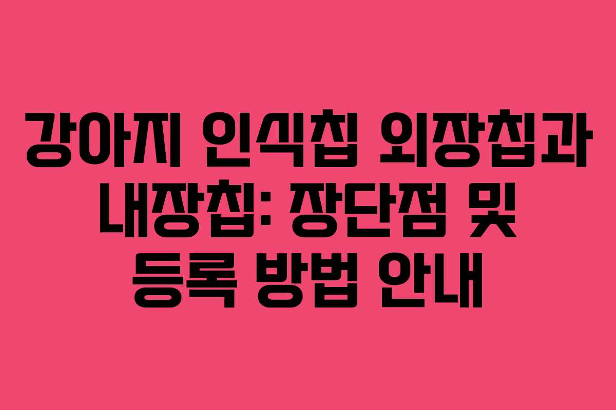 강아지 인식칩은 반려견의 안전을 위한 필수 장치로, 외장과 내장 두 가지 형태가 각각의 장단점을 가지고 있다. 보호자의 생활 방식과 강아지의 특성을 고려하여 신중하게 선택하는 것이 중요하다. 반려동물은 가족과 같은 존재이므로, 인식칩 등록은 반드시 필요하다. 따라서 지금 바로 인식칩을 선택하고 등록하는 과정을 진행하길 권장한다.