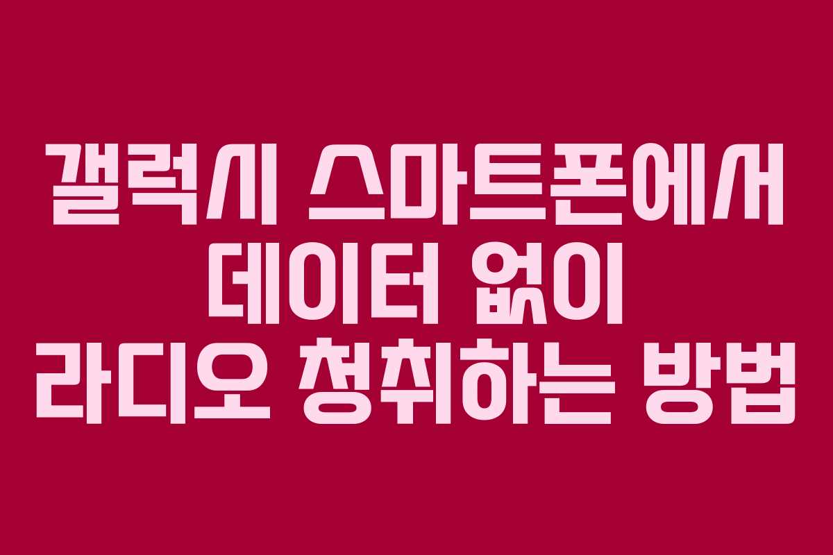 갤럭시 스마트폰은 내장 라디오 기능이 있어 데이터나 Wi-Fi 없이도 라디오를 청취할 수 있는 장점을 가지고 있다. 이 글에서는 갤럭시 기기를 활용하여 모바일 데이터나 Wi-Fi 없이 라디오를 듣는 방법을 소개한다.
