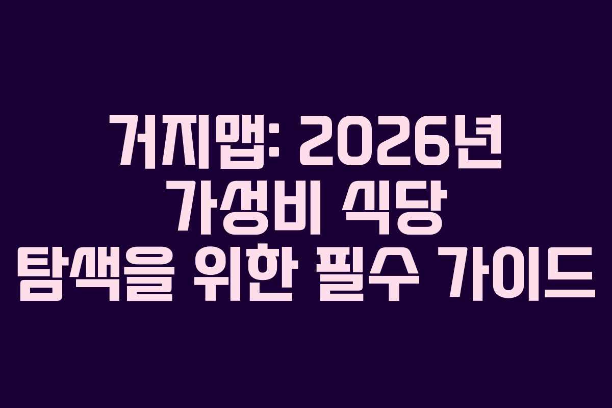 - 2026년 현재, 거지맵과 함께하는 가성비 식당 탐방