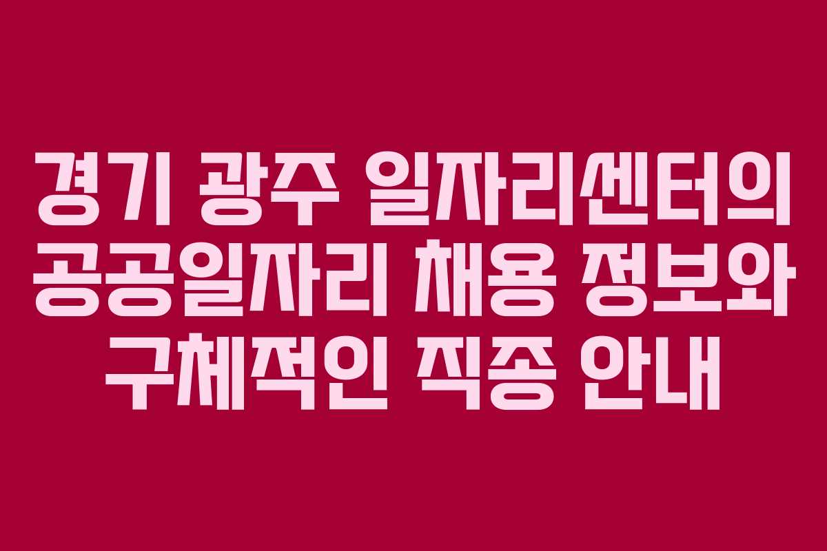 - 경기 광주 일자리센터의 공공일자리 모집은 어떻게 이루어지나요