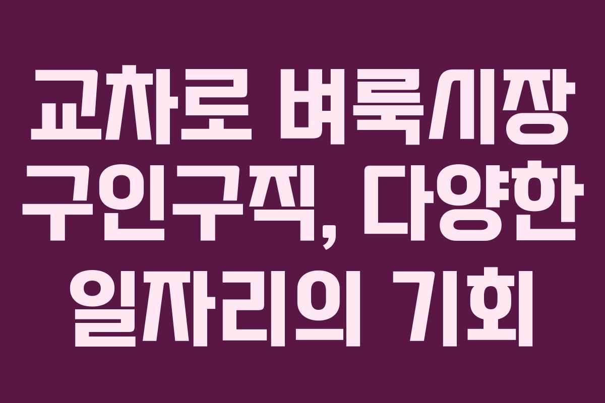 이러한 팁을 통해 구직자는 보다 효과적으로 원하는 일자리를 찾아갈 수 있습니다. 특히 교차로 벼룩시장은 다양한 정보를 제공하기 때문에 이를 활용하지 않을 이유가 없습니다.