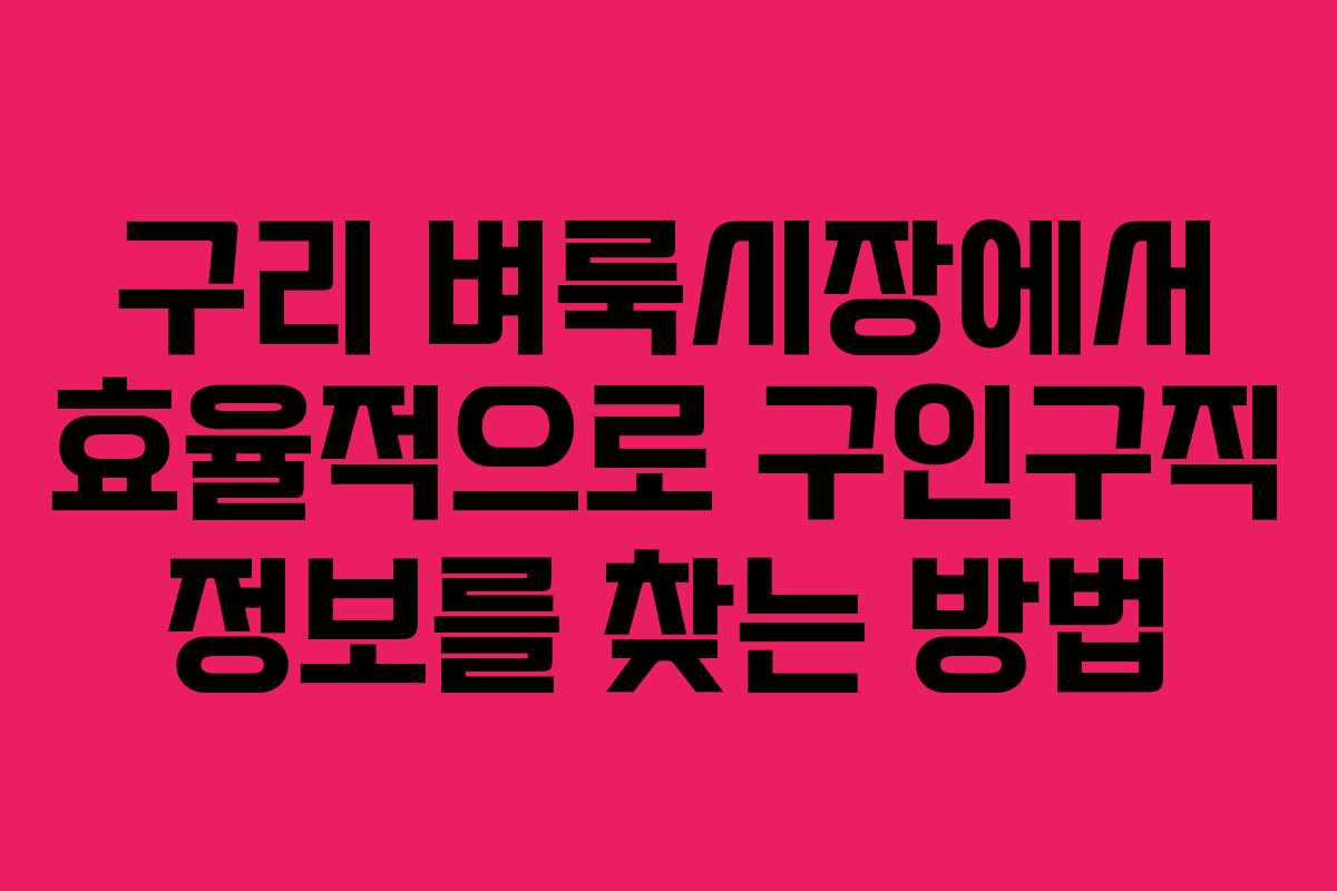 구리 벼룩시장 구인구직 활용 팁
