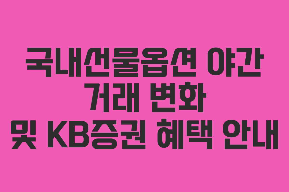 2026년 6월부터 국내선물옵션 야간 거래가 새롭게 변화합니다. 이로 인해 투자자들에게 여러 가지 유리한 점이 제공되며, 특히 KB증권에서 준비한 특별한 혜택이 있습니다. 이번 기회를 통해 국내선물옵션 투자에 대한 이해를 높이고, 변화를 잘 활용할 수 있도록 정보를 정리해 보겠습니다.