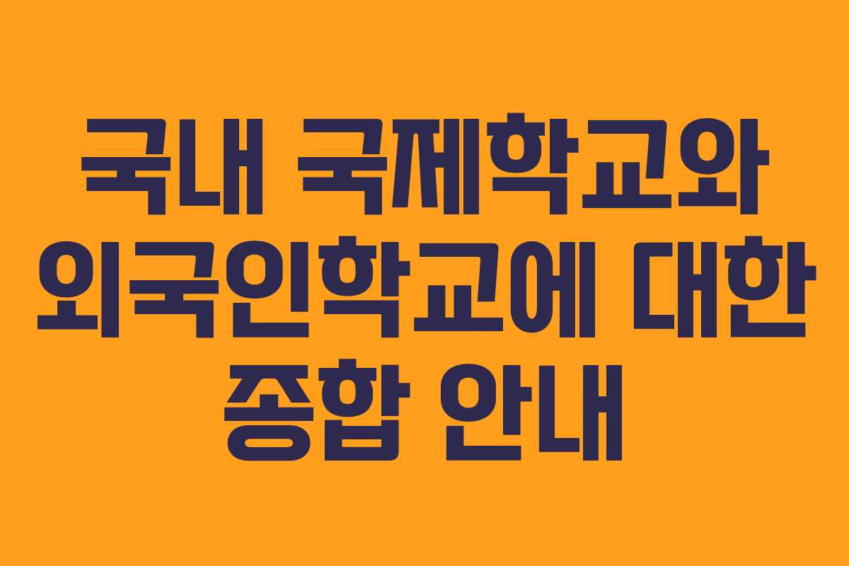 - 🤔 국내 국제학교와 외국인학교에 대한 자주 묻는 질문들 (FAQ)