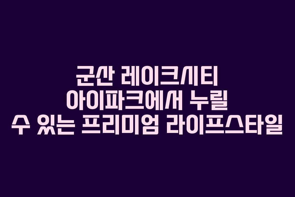 군산 레이크시티 아이파크는 군산에서 새로운 주거 프리미엄을 제공하는 아파트 단지로, 현대적인 라이프스타일을 원하는 이들에게 최적의 선택이 될 수 있다. 이 프로젝트는 군산의 매력적인 위치와 함께 다양한 생활 인프라를 갖추고 있어, 많은 이들에게 주목받고 있다.