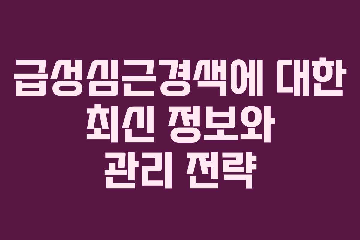 급성심근경색은 빠른 대처가 생명을 좌우할 수 있는 질환입니다. 의심되는 증상이 나타나면 즉시 119에 연락하여 적절한 치료를 받아야 합니다. 평소 건강관리에 신경을 쓰고 정기적인 검진을 통해 위험 요인을 줄이는 것이 중요합니다. 이 글이 급성심근경색에 대한 이해를 높이고, 예방과 대처에 도움이 되기를 바랍니다.