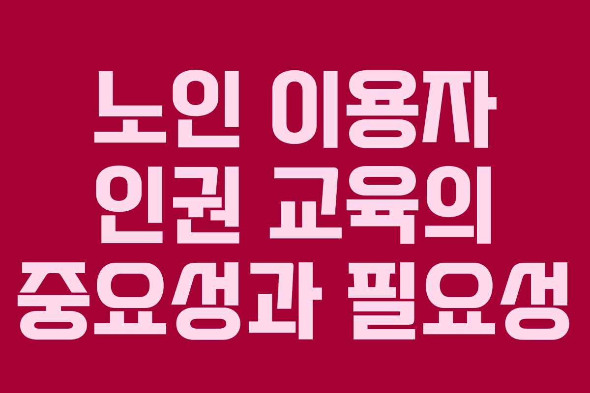 노인 이용자 인권 교육은 노인들이 자신의 권리를 이해하고 주장할 수 있도록 돕는 중요한 과정이다. 교육을 통해 노인은 자신의 권리를 존중받고, 사회에서의 역할을 더욱 잘 수행할 수 있다. 따라서 노인 인권 교육의 필요성과 중요성을 인식하고, 이를 적극적으로 추진하여 누구나 존엄하게 대우받는 사회를 만들어 나가야 한다.