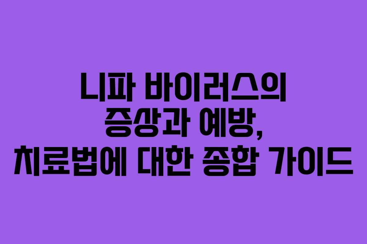니파 바이러스는 건강에 심각한 위협을 주는 병원체로, 특히 아시아 지역에서의 발생 사례가 많다. 이 글에서는 니파 바이러스의 증상, 전파 경로, 백신 개발 현황, 치료법 등을 살펴보겠다.