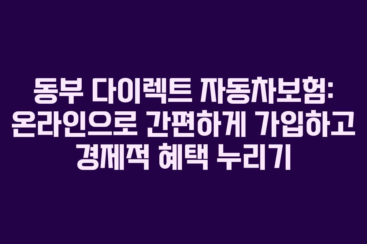 동부 다이렉트 자동차보험 가입은 어떻게 하나요