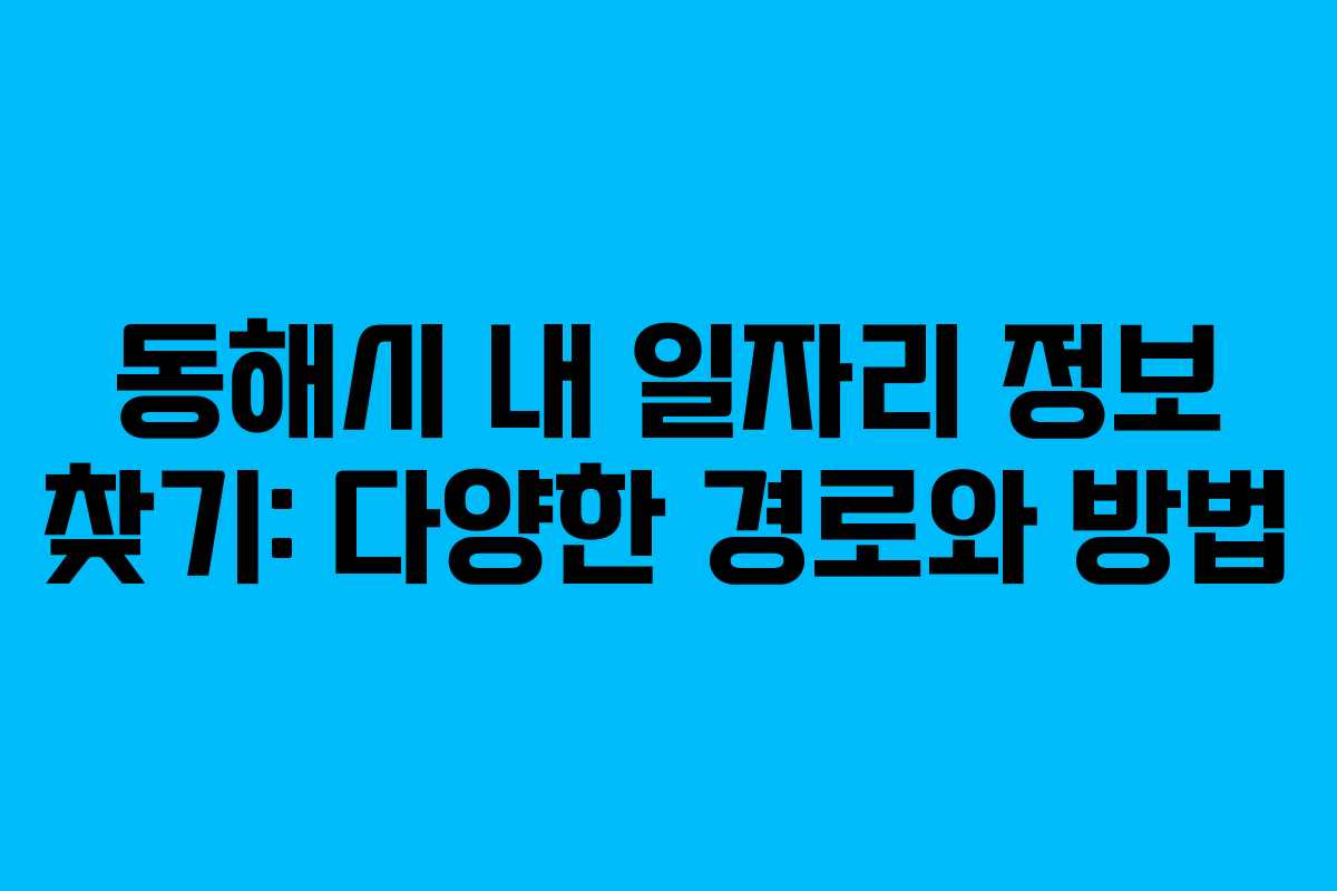 동해시에서 일자리 정보를 보다 효과적으로 검색하기 위해서는 다양한 경로를 활용하는 것이 최선입니다. 현재 사용 가능한 여러 플랫폼을 통해 정보를 수집하고, 실시간으로 업데이트되는 내용을 확인하는 것이 중요합니다. 이를 통해 원하는 일자리를 더욱 쉽게 찾을 수 있습니다.