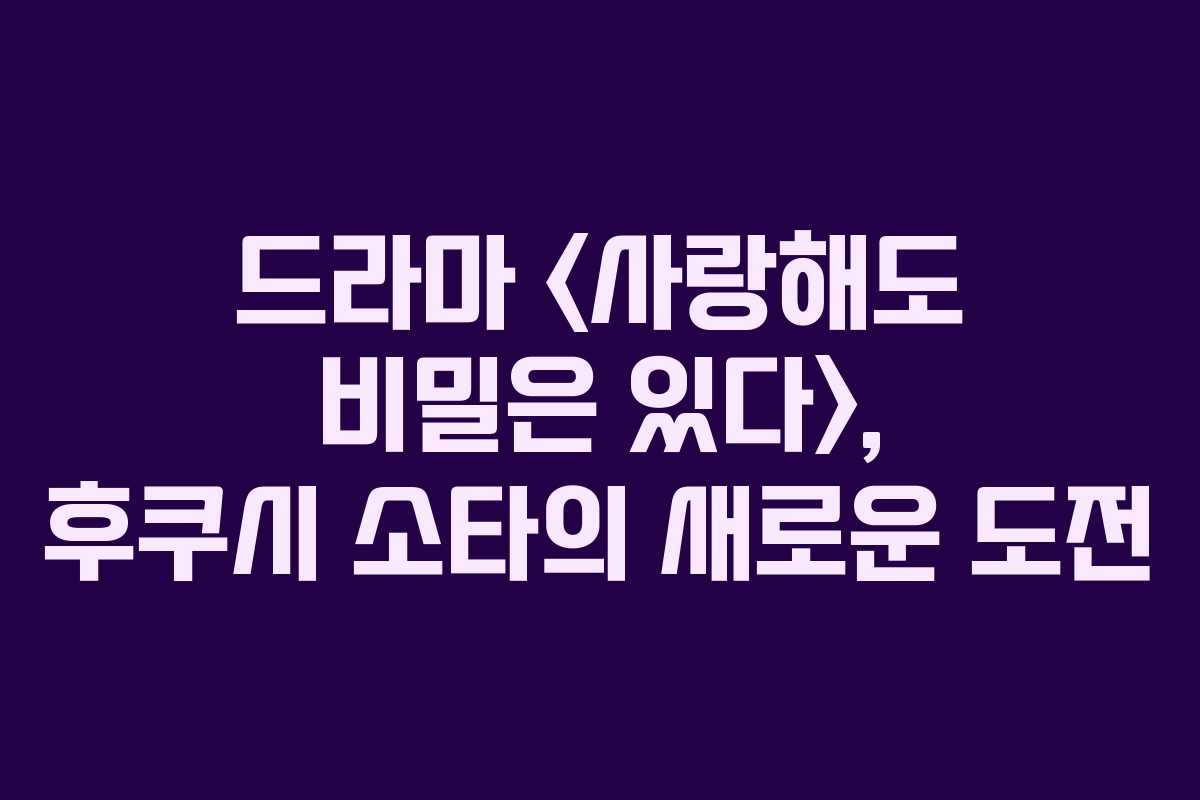 후쿠시 소타가 주연으로 출연하는 NTV 드라마 <사랑해도 비밀은 있다>가 많은 기대를 모으고 있다. 이 드라마는 주인공이 숨기고 있는 비밀과 그 비밀로 인해 발생하는 여러 사건들을 다루고 있으며, 시청자들에게 흥미진진한 이야기를 선사할 예정이다. 본 작품은 후쿠시가 처음으로 미스터리 장르에 도전하는 것으로, 그의 연기력과 캐릭터의 복잡한 감정을 어떻게 표현할지 주목받고 있다.