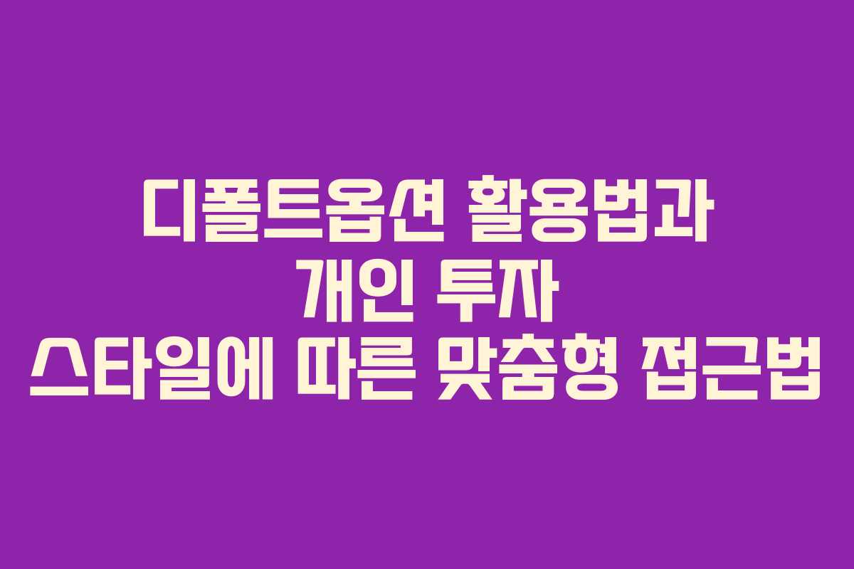투자 스타일에 따른 디폴트옵션 활용법