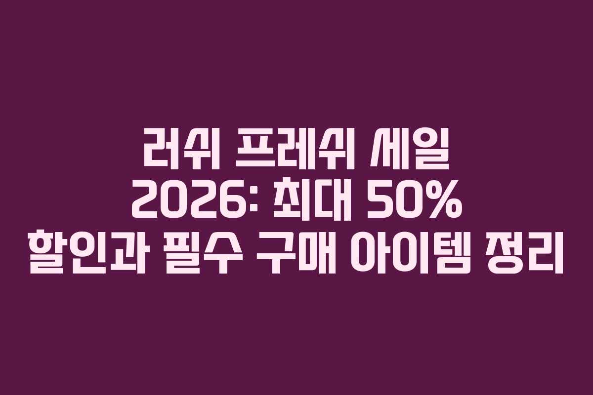 러쉬 프레쉬 세일 2026: 최대 50% 할인과 필수 구매 아이템 정리