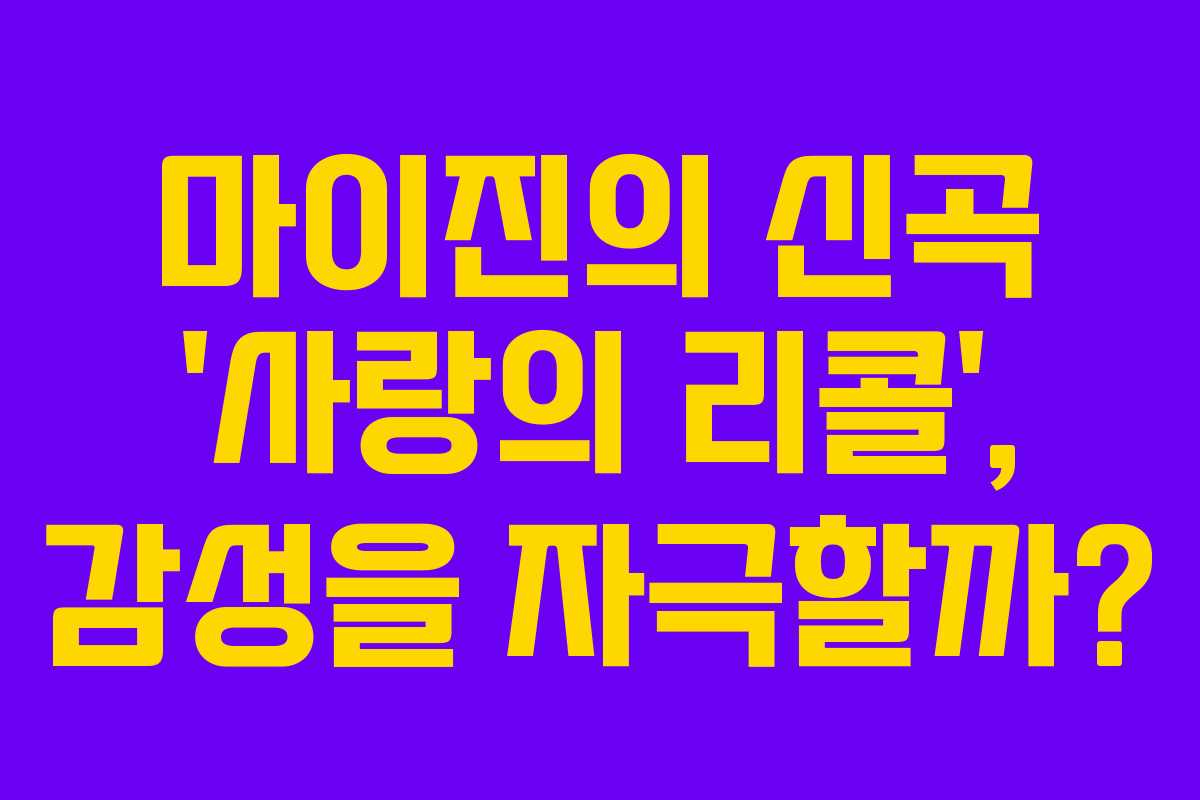 마이진의 신곡 ‘사랑의 리콜’은 제목에서부터 애절한 사랑의 감정을 느낄 수 있다. 이 곡은 이별 후에도 잊지 못하는 사랑을 회상하며, 다시 부르고 싶은 그리움을 담고 있다. 마이진 특유의 애절한 창법이 곁들여져, 듣는 이의 마음을 저릿하게 만들 것이라는 예측이 나온다.