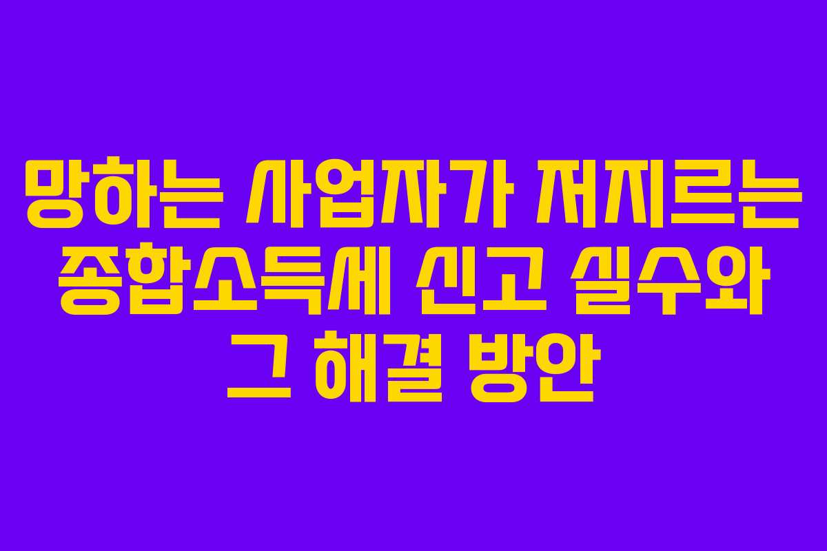 사업을 운영하면서 세금 신고는 필수적인 과정입니다. 그러나 많은 사업자들은 종합소득세 신고에서 여러 가지 실수를 범하게 되며, 이는 심각한 재정적 결과를 초래할 수 있습니다. 이러한 실수는 벌금, 자산 압류, 심지어 형사 기소로 이어질 수 있습니다. 이번 블로그에서는 망하는 사업자가 종합소득세 신고에서 흔히 저지르는 실수와 이를 예방하기 위한 방법에 대해 살펴보겠습니다. 독자들은 이 정보를 통해 세무 관련 문제를 미리 파악하고, 자신을 보호할 수 있는 기회를 가질 수 있습니다.