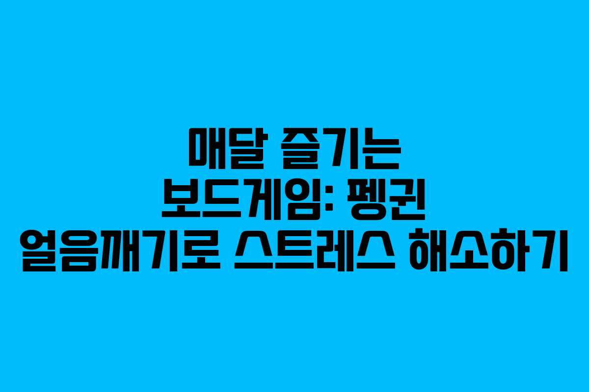 보드게임은 다양한 이유로 선택될 수 있다. 특히, 스트레스 해소와 재미를 동시에 추구하는 현대인들에게 적합한 선택이다. 펭귄 얼음깨기와 같은 간단한 게임은 대화의 기회를 제공하고, 상대방과의 유대감을 강화하는 데 도움을 준다.
