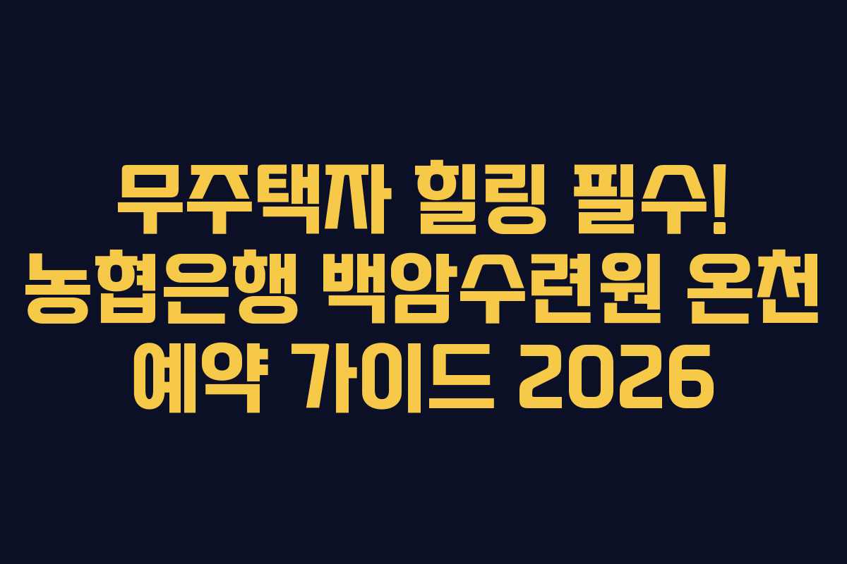 무주택자로 살아가는 일은 참으로 힘든 일입니다. 특히 요즘 같은 시대에 집 한 채 없는 삶은 경제적, 정서적으로 많은 부담을 안게 만들죠. 그런 저에게 힐링의 순간이 필요한 시점에, 농협은행 백암수련원의 온천을 알게 되었습니다. 이곳은 농업인 조합원과 NH농협생명 계약자에게 제공되는 특별한 공간으로, 이번 포스팅을 통해 백암수련원의 예약 방법과 이용 정보를 공유하고자 합니다.