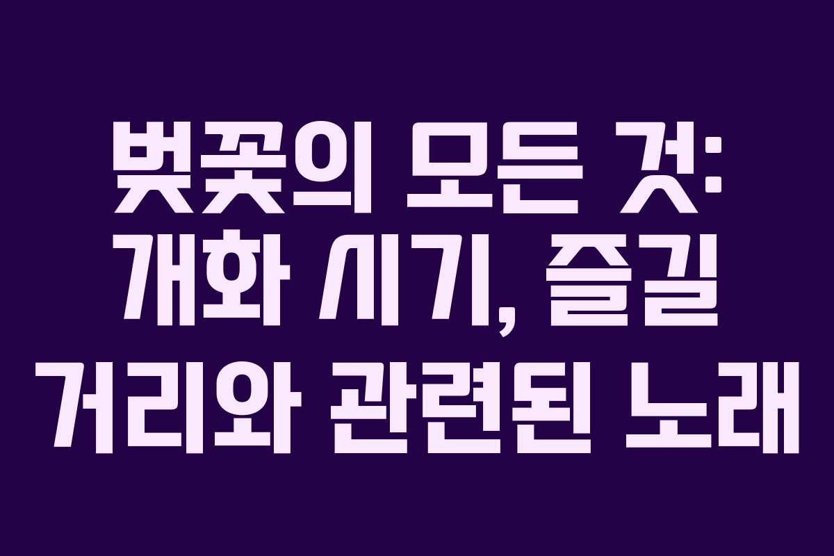 위 노래들은 벚꽃의 아름다움과 봄의 감성을 담고 있으며, 각국의 문화에서 중요한 역할을 하고 있다. 이러한 곡들을 들으며 벚꽃놀이를 즐긴다면 더욱 특별한 경험이 될 것이다.