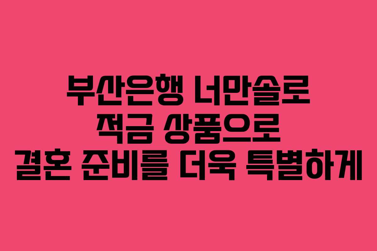 부산은행 너만솔로 적금 상품으로 결혼 준비를 더욱 특별하게