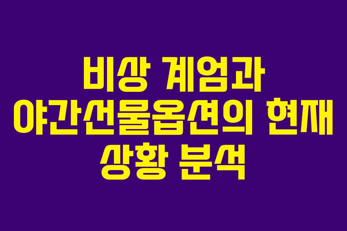 비상 계엄의 선포는 국가의 비상사태를 나타내며 다양한 경제적 여파를 동반한다. 최근 윤석열 대통령이 비상계엄을 선포한 이후, 금융 시장과 관련 산업에 미치는 영향이 심각하게 나타나고 있다. 이 글에서는 비상계엄의 의미와 야간선물옵션의 현황, 그리고 이러한 상황이 주식 시장에 미치는 영향을 세부적으로 살펴보겠다.