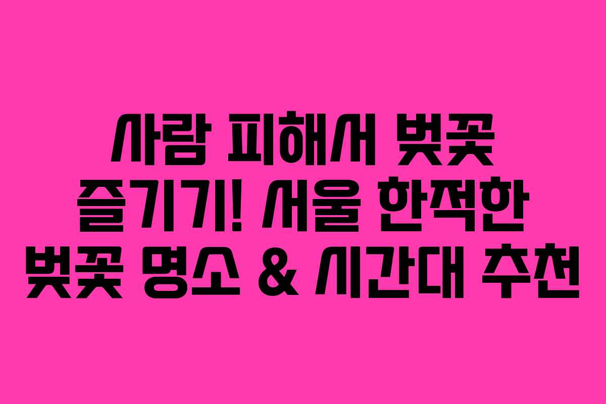 벚꽃은 봄의 상징으로 많은 이들에게 사랑받는 자연현상이다. 하지만 인파가 많은 곳에서는 여유로운 시간을 보내기 어려운 경우가 많다. 서울에서도 비교적 한적하게 벚꽃을 감상할 수 있는 방법이 존재한다. 2026년 봄, 사람들로 붐비지 않는 벚꽃 구경 전략을 소개한다.