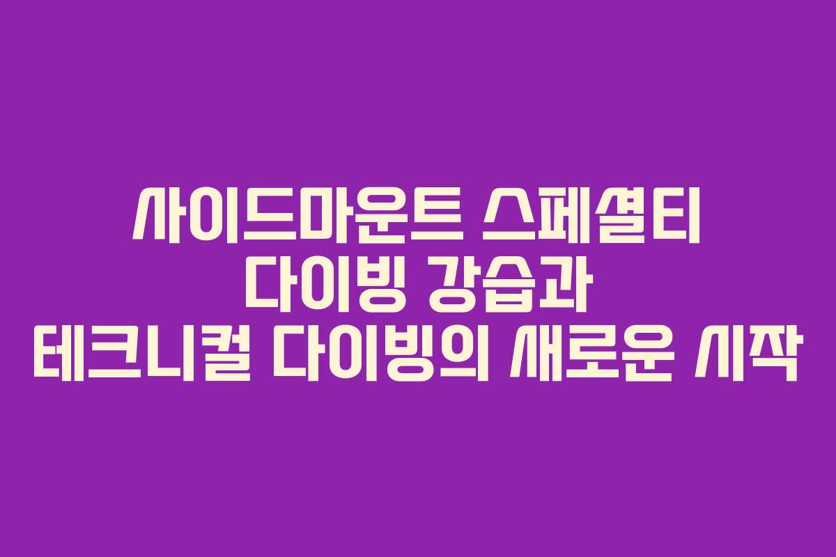 사이드마운트 스페셜티 다이빙 강습과 테크니컬 다이빙의 새로운 시작