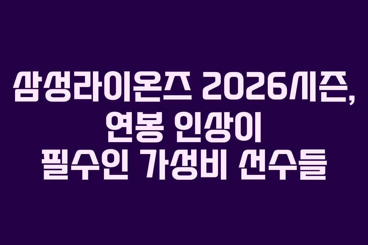삼성라이온즈는 2025 시즌을 마무리하며 팬들에게 희망적인 메시지를 전달했다. 전반기 8위에서 후반기 반등을 통해 정규시즌 4위로 마감하며 포스트시즌 진출에 성공한 팀의 저력은 인상적이었다. 이제 구단은 2026 시즌을 준비하며 선수들의 연봉 협상에 나선다. 이번 포스트에서는 연봉 인상이 시급한 최고의 가성비 선수 TOP5를 살펴보겠다.