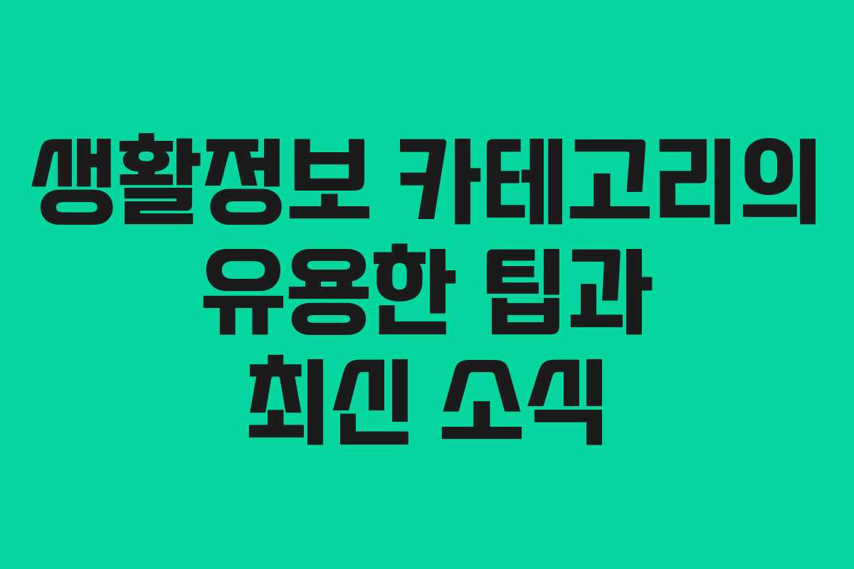 생활정보 카테고리는 일상에서 유용하게 활용할 수 있는 다양한 정보와 팁을 제공합니다. 여기서는 최신 소식과 함께 생활 속에서 쉽게 적용할 수 있는 유용한 정보를 소개합니다.