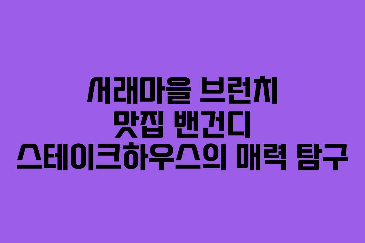 서래마을에는 다양한 맛집들이 존재하지만, 그 중에서도 특별한 분위기와 요리를 제공하는 밴건디 스테이크하우스를 추천합니다. 이곳은 출장 중 만난 후배와의 특별한 브런치 시간을 위해 선택한 장소로, 기대감을 높이며 방문했습니다. 신반포역에서 가까운 위치로 접근이 용이하고, 고속터미널역에서도 비슷한 거리에 있어 편리합니다.