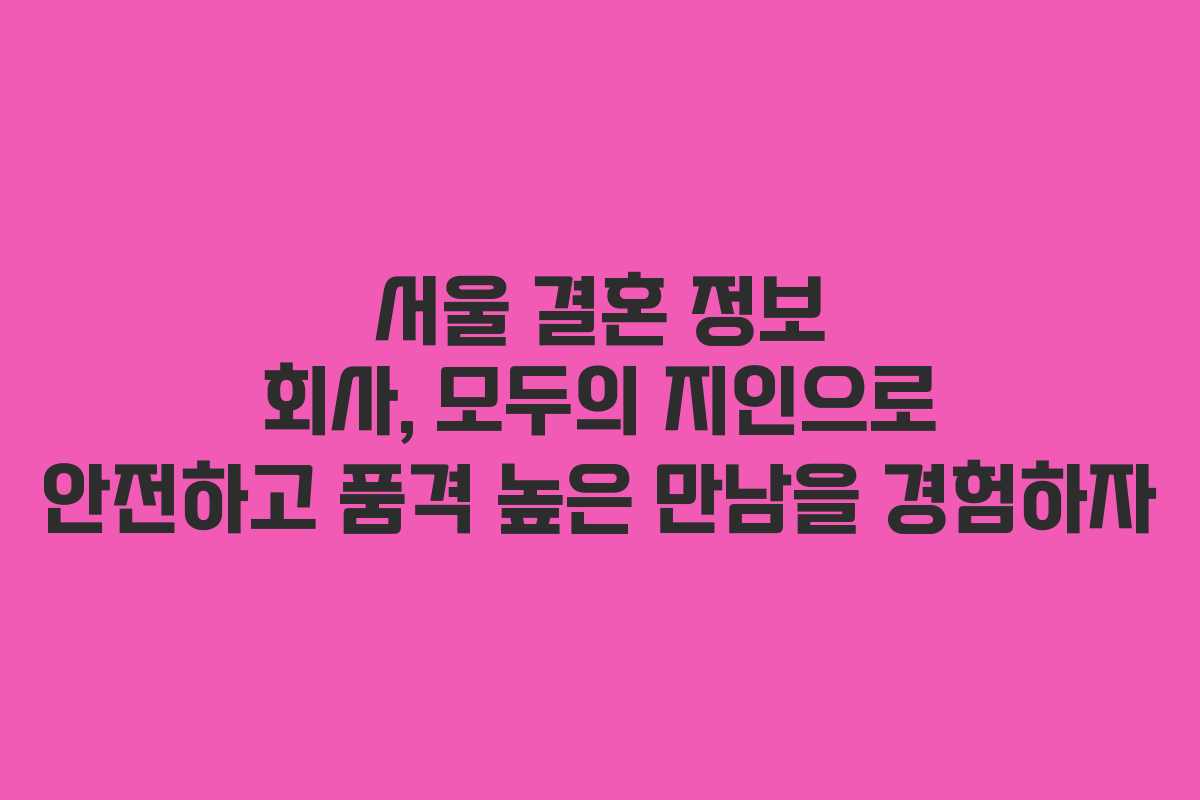 - 서울 결혼 정보 회사의 새로운 패러다임