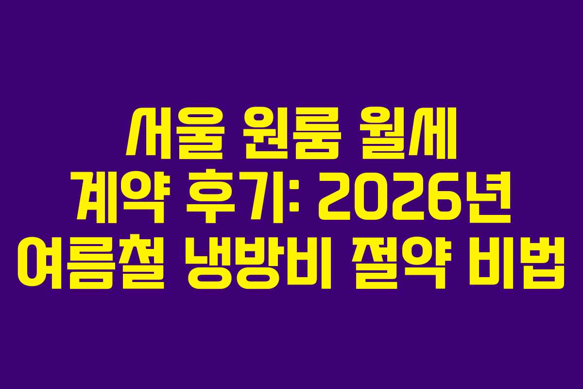 2026년 여름, 뜨거운 태양이 내리쬐는 서울의 어느 날, 나는 원룸 계약을 마친 후 고심에 빠졌다. 월세는 점점 오르고, 특히 여름철 냉방비가 걱정되었던 것이다. 서울의 월세 시장이 어떻게 변화하고 있는지, 그리고 그 속에서 내가 어떤 선택을 해야 하는지에 대한 고민이 깊어졌다. 이 글에서는 서울 원룸 월세 계약 후기를 통해 여름철 냉방비를 절약할 수 있는 몇 가지 팁과 함께, 서울 월세 시장의 동향을 살펴보려 한다.