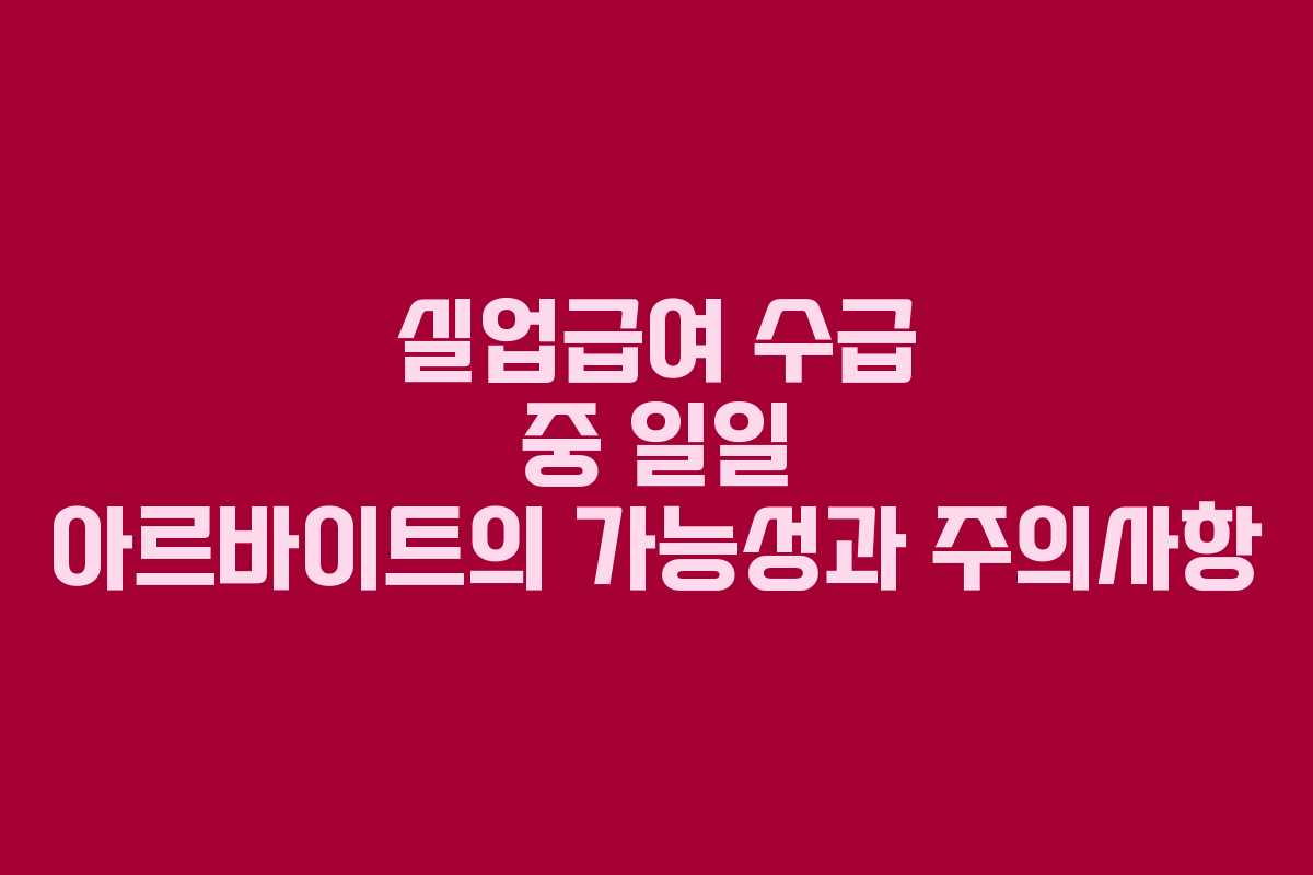 실업급여 수급 중 일일 아르바이트의 가능성과 주의사항