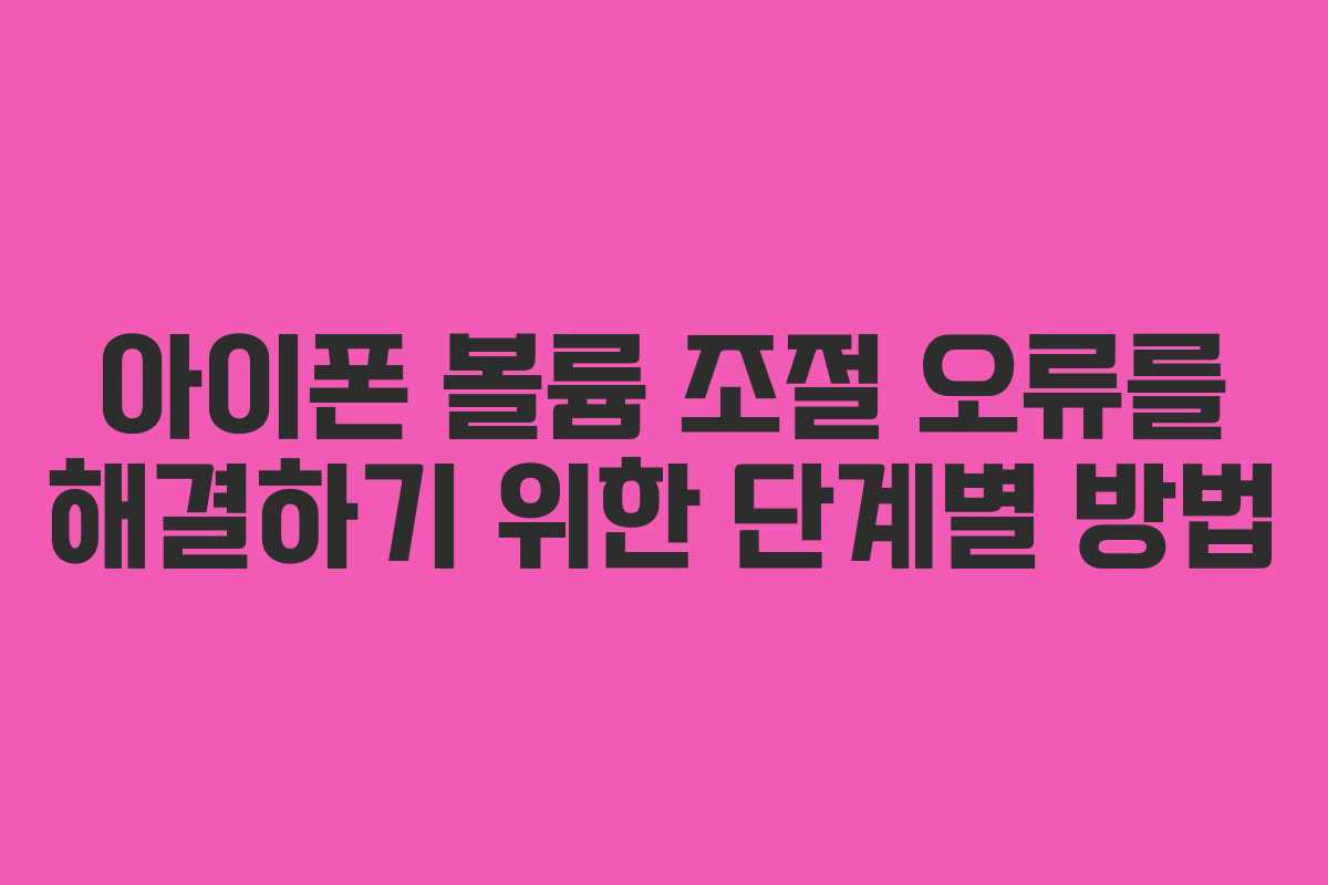 아이폰의 볼륨 조절 오류를 해결하기 위해 다음의 단계들을 따라 해 보세요. 각 단계는 간단하며, 문제를 해결하는 데 효과적입니다.