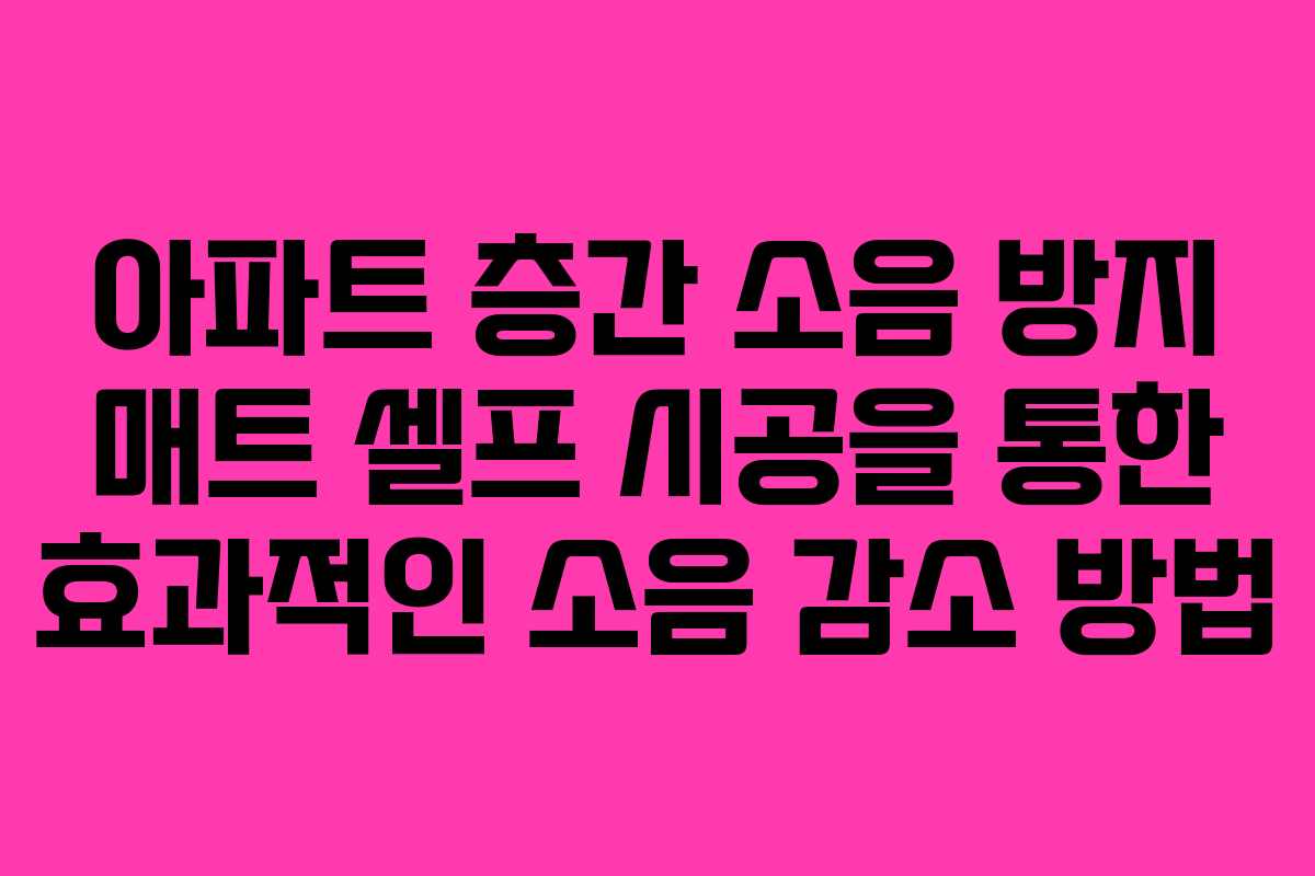 층간 소음 방지 매트를 셀프 시공하고자 하는 분들을 위해 유용한 가이드를 정리해 보았다. 아래의 내용을 참고하여 성공적인 시공을 이루길 바란다.