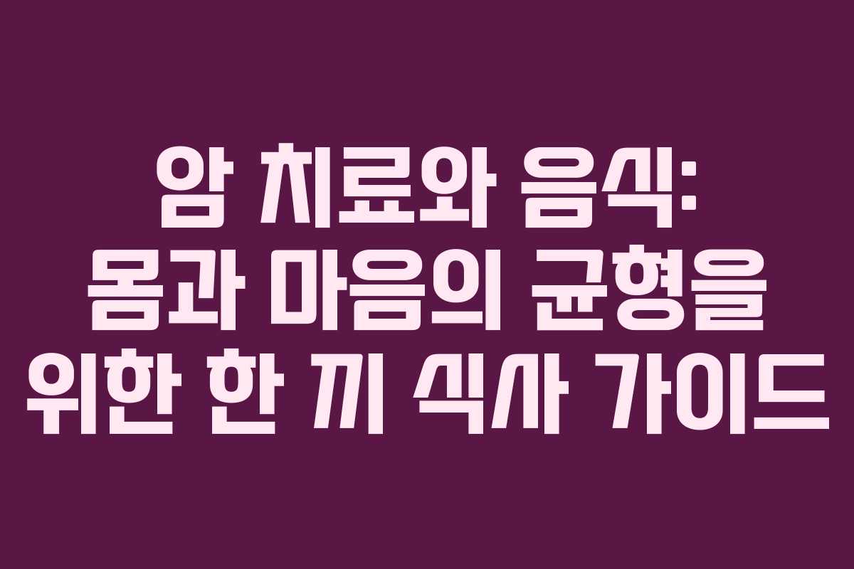 지금까지 설명한 내용을 바탕으로, 암 치료 과정에서 음식이 어떻게 몸과 마음의 균형을 맞추는 데 기여하는지를 이해하고 실천해보기를 바랍니다.
