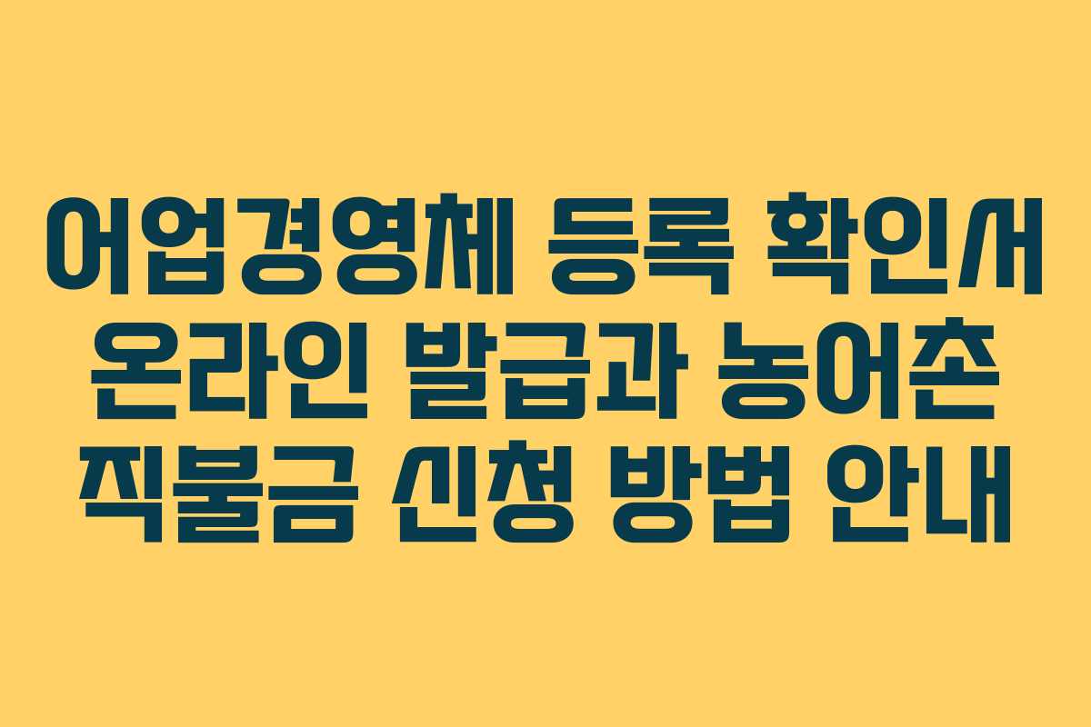 어업경영체 등록 확인서는 정부24 웹사이트를 통해 온라인으로 신청할 수 있으며, 필요한 서류를 준비한 후 신청하면 된다.농어촌 직불금은 누구나 신청할 수 있나요?