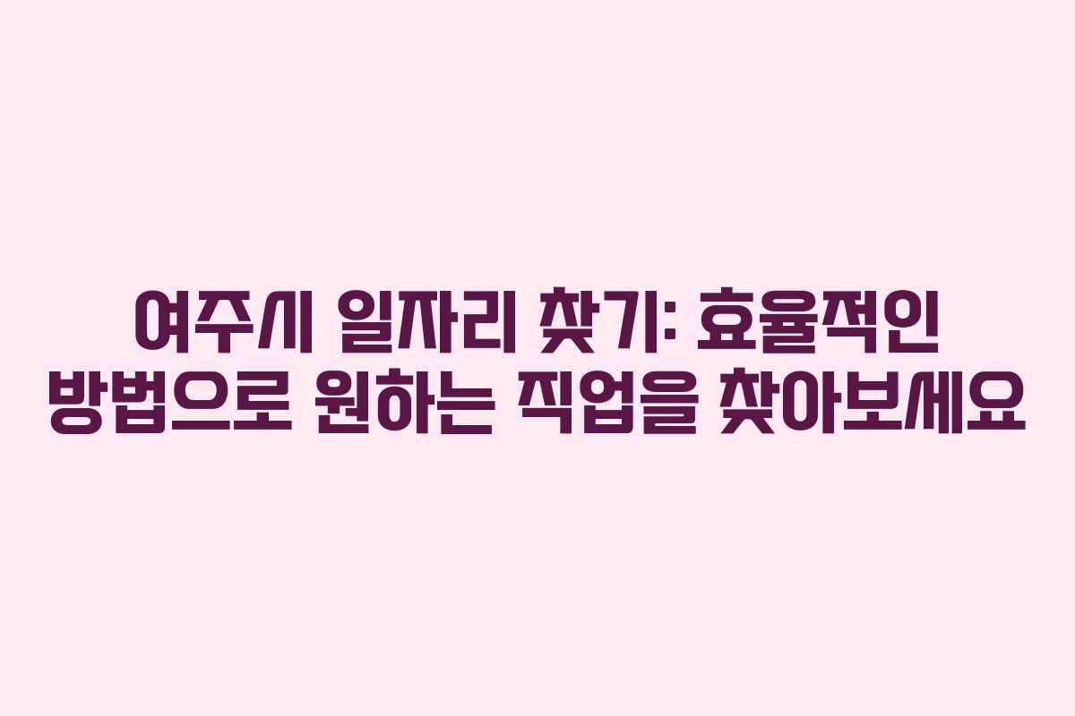 여주시는 다양한 일자리 정보를 제공하는 지역으로, 많은 구직자들이 이곳에서 원하는 직업을 찾아가고 있습니다. 본 포스팅에서는 여주시청의 채용정보와 민간 일자리 탐색을 위한 방법을 안내합니다. 여주시에서 제공하는 자원들을 통해 효율적으로 일자리를 찾아보세요.