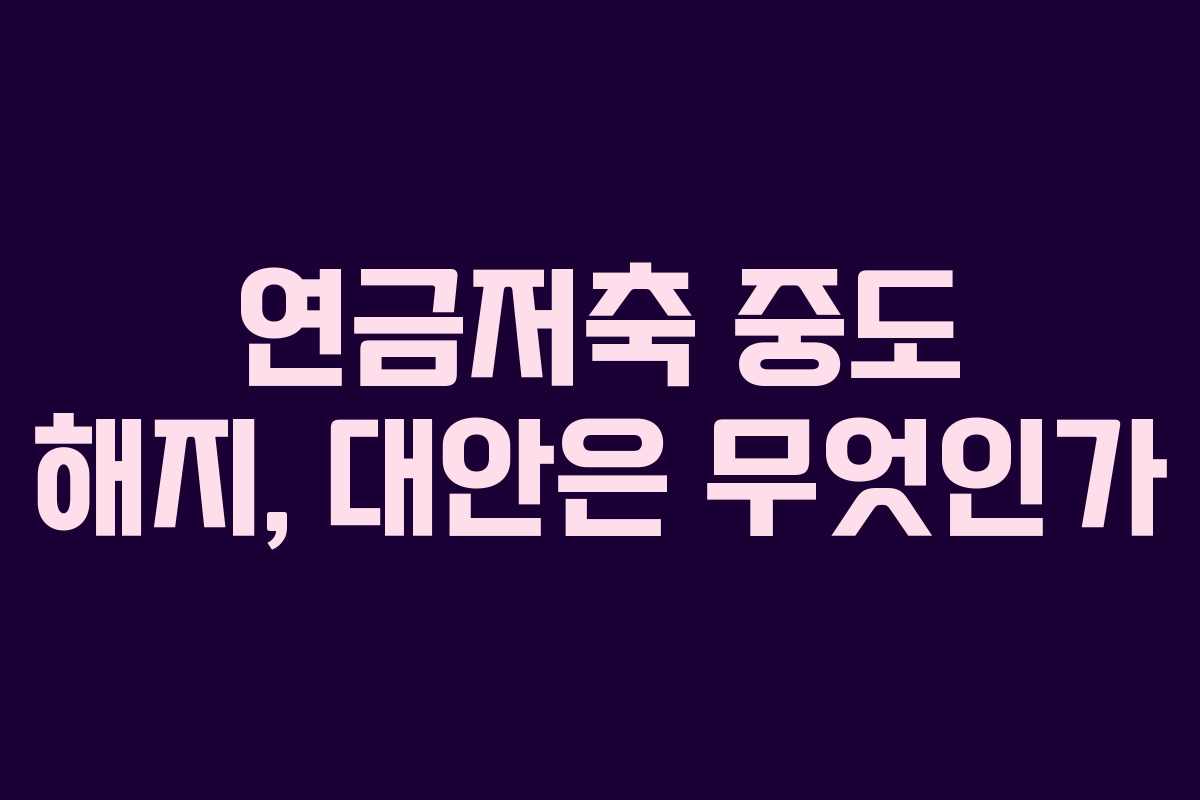 연금저축은 노후 준비를 위한 중요한 금융 상품입니다. 하지만 다양한 이유로 중도 해지를 고려하는 경우가 많습니다. 세제 혜택과 손실을 동시에 고려해야 하는 만큼, 신중한 판단이 필요합니다. 여기서는 중도 해지를 고민하는 상황에서 대안적인 방법들을 살펴보겠습니다.