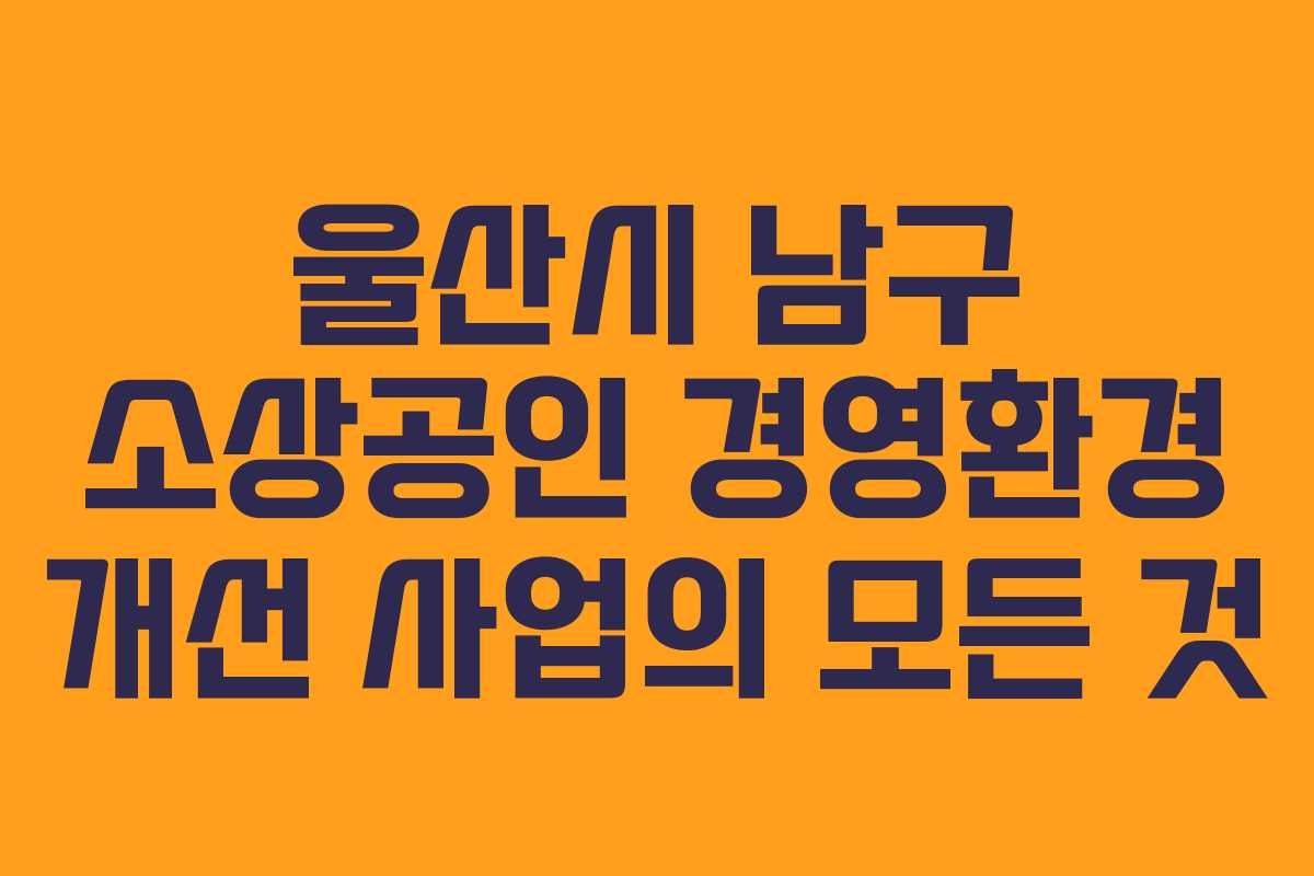 울산시 남구 소상공인 경영환경 개선 사업의 모든 것