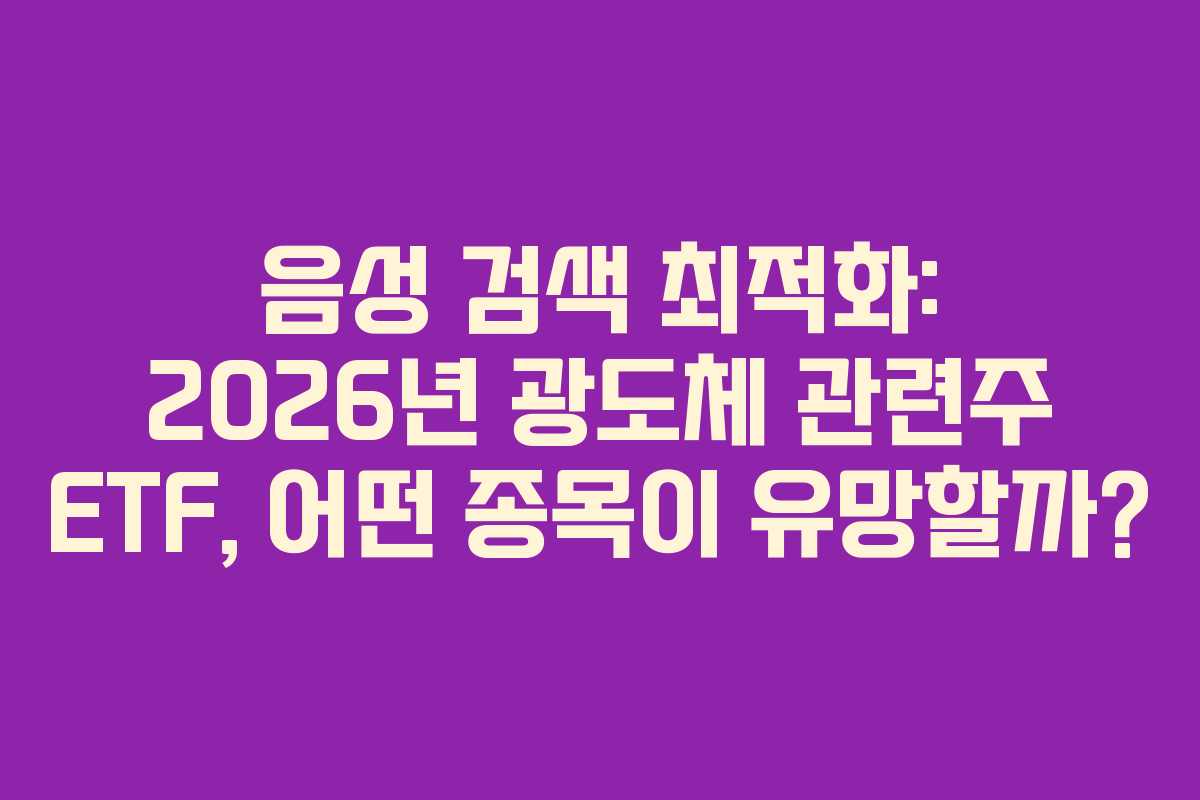 2026년, 광도체 관련주 ETF에 대한 투자 관심이 급증하는 가운데, 음성 검색 최적화는 이 시장에서 중요한 역할을 하고 있습니다. 오늘은 직장인 부업을 통해 얻은 경험을 바탕으로 광도체 투자에 대한 통찰력과 함께, 음성 검색 최적화 전략을 살펴보겠습니다.