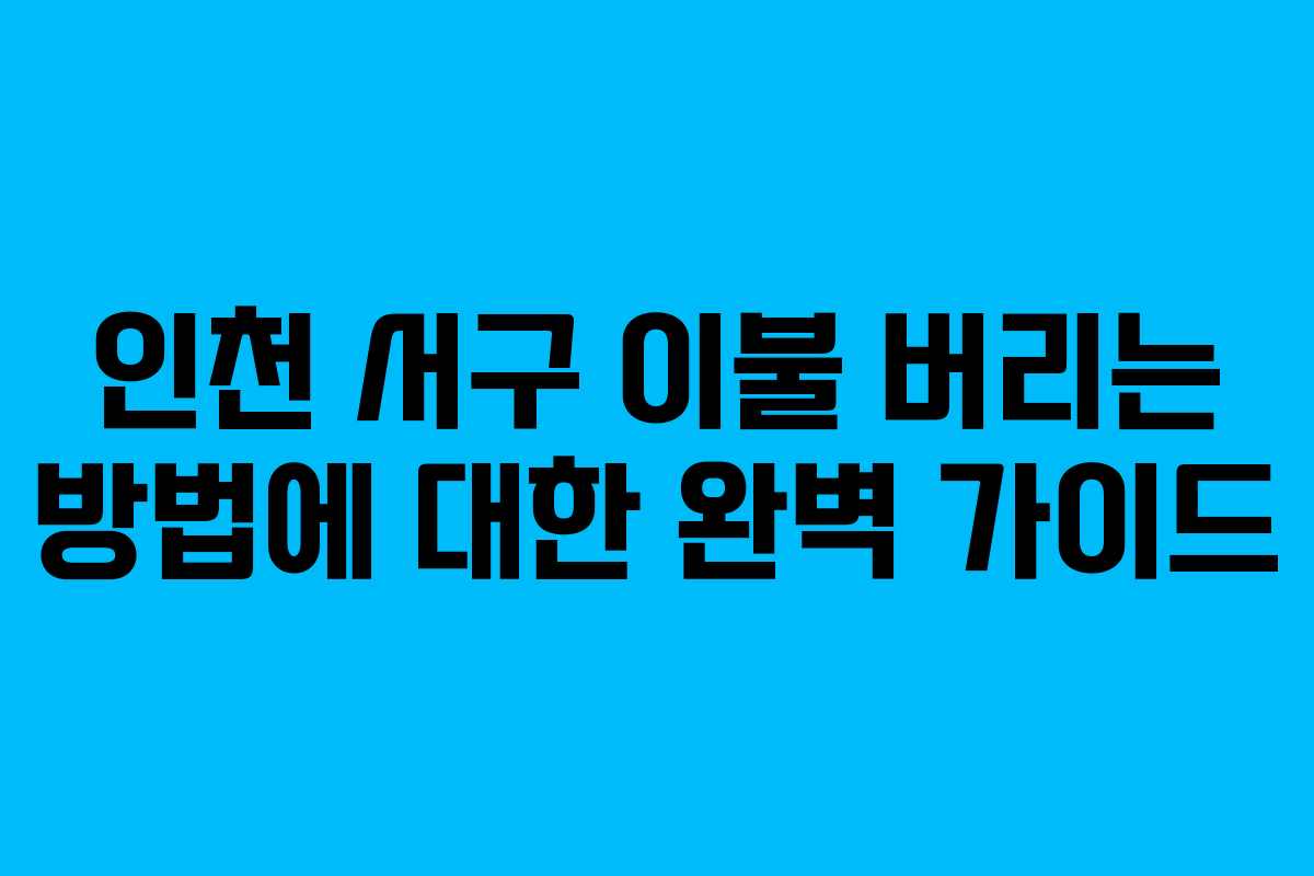인천 서구에서 이불을 처리하는 방법은 다양한 옵션이 있습니다. 이불의 종류와 상태에 따라 적절한 방법을 선택하는 것이 중요합니다. 오늘은 2026년 기준으로 이불을 버리는 방법을 상세히 알아보겠습니다.