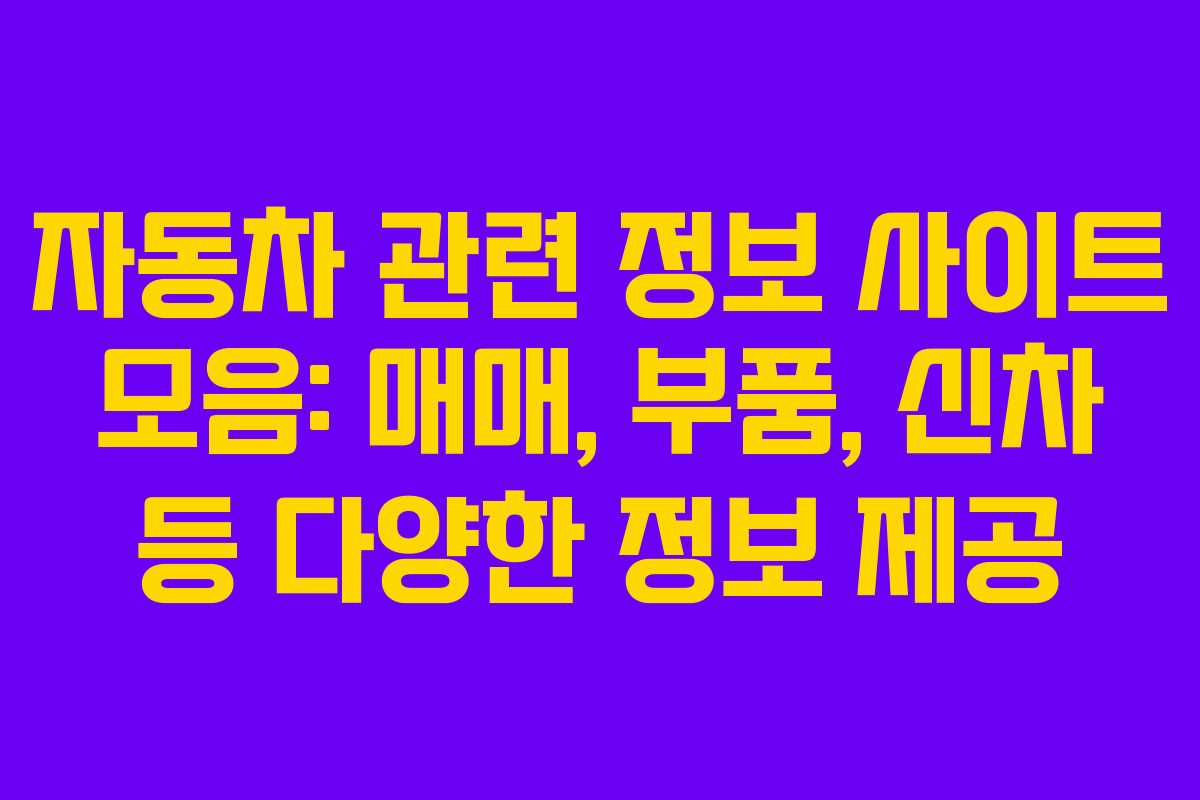 자동차는 우리의 생활에서 중요한 이동 수단이며, 그와 관련된 정보는 다양하고 방대하다. 이 글에서는 자동차 부품, 매매, 신차 및 기타 관련 정보를 제공하는 웹사이트를 모아 소개한다. 이러한 사이트들은 자동차에 대한 전반적인 정보를 제공하며, 필요한 서비스를 손쉽게 찾을 수 있도록 돕는다.