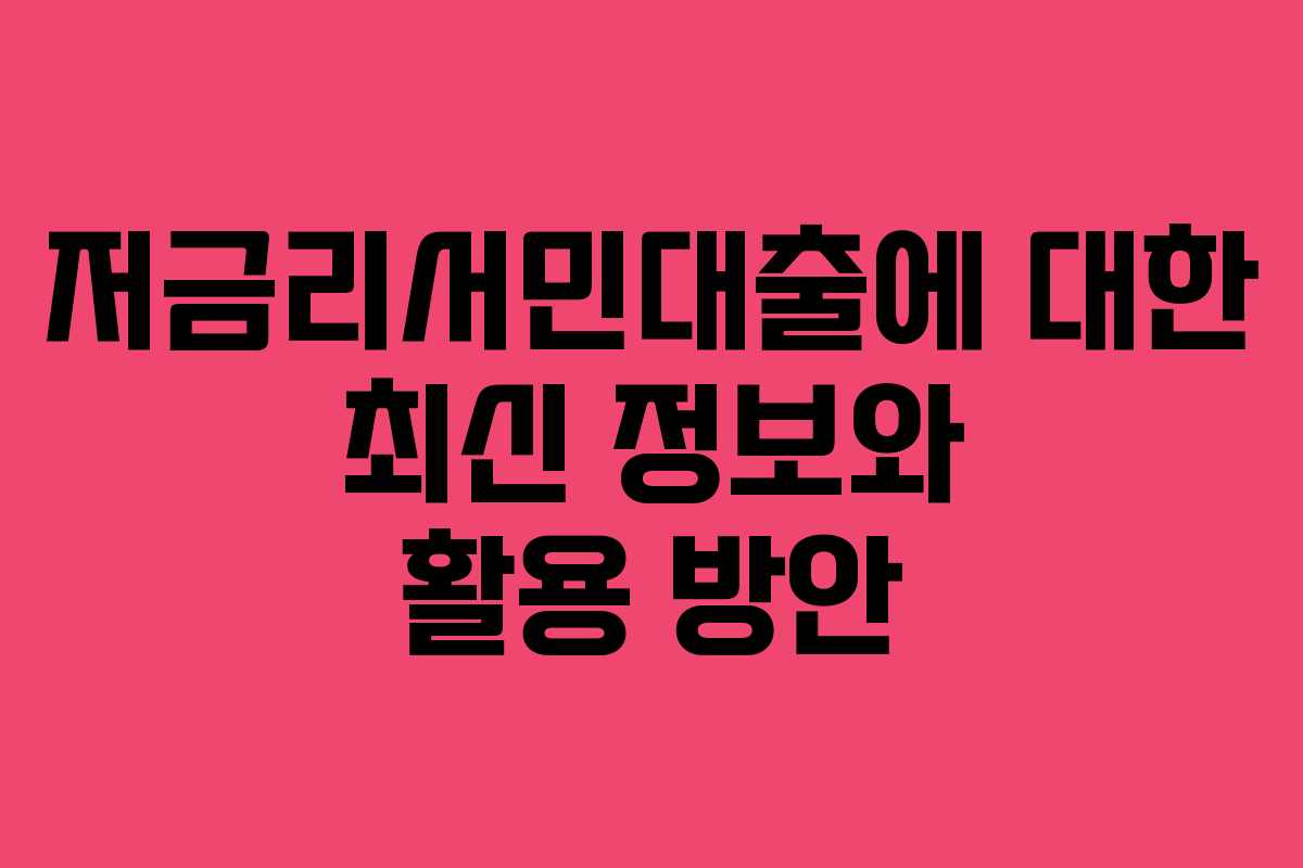 저금리서민대출은 많은 사람들에게 실질적인 도움이 되는 대출 상품입니다. 국가가 지원하는 이 대출은 신용등급이 낮은 서민들에게도 접근할 수 있는 기회를 제공합니다. 이 글에서는 2026년 기준으로 저금리서민대출의 현황과 이용 방법에 대해 자세히 알아보겠습니다.