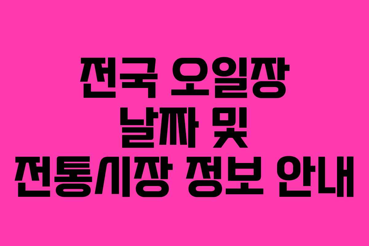 전국의 오일장 및 전통시장은 지역 사회의 중요한 경제 활동으로 자리잡고 있습니다. 매일 또는 정해진 날짜에 열리는 오일장은 다양한 상품을 저렴하게 구매할 수 있는 기회를 제공합니다. 이번 글에서는 2026년 기준으로 전국 오일장 날짜와 전통시장 주소, 사용 가능한 상품권 정보에 대해 자세히 알아보겠습니다.