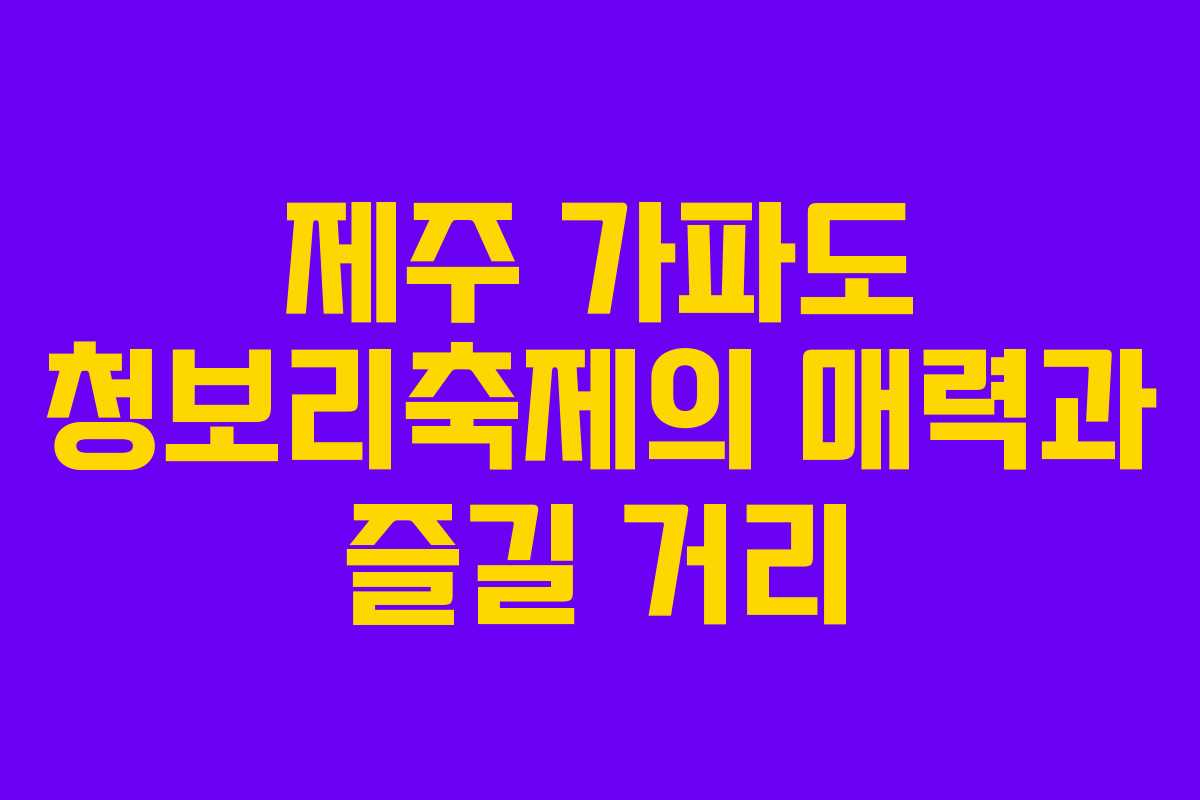 제주 가파도에서 매년 열리는 청보리축제는 청정 자연과 아름다운 풍경을 감상할 수 있는 특별한 경험을 제공합니다. 2026년에는 4월 7일부터 5월 7일까지 한 달간 진행될 예정이며, 이 시기를 맞아 많은 이들이 이곳을 찾을 것입니다. 축제는 청보리의 푸르름과 함께 다양한 먹거리와 볼거리를 제공합니다. 이 글에서는 가파도 청보리축제의 매력과 여행 중 만나게 될 즐길 거리들에 대해 소개하겠습니다.