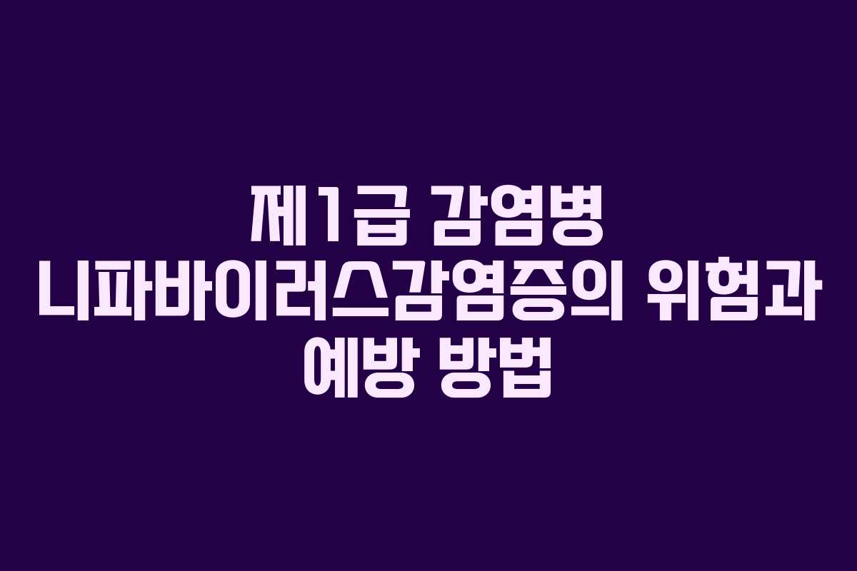 니파바이러스감염증은 매우 위험한 질병으로, 예방이 무엇보다 중요하다. 감염된 동물과의 접촉을 피하고, 개인 위생을 철저히 지키는 것이 가장 효과적인 예방 방법이다. 현재로서는 치료제가 없기 때문에 감염되지 않도록 주의해야 한다.