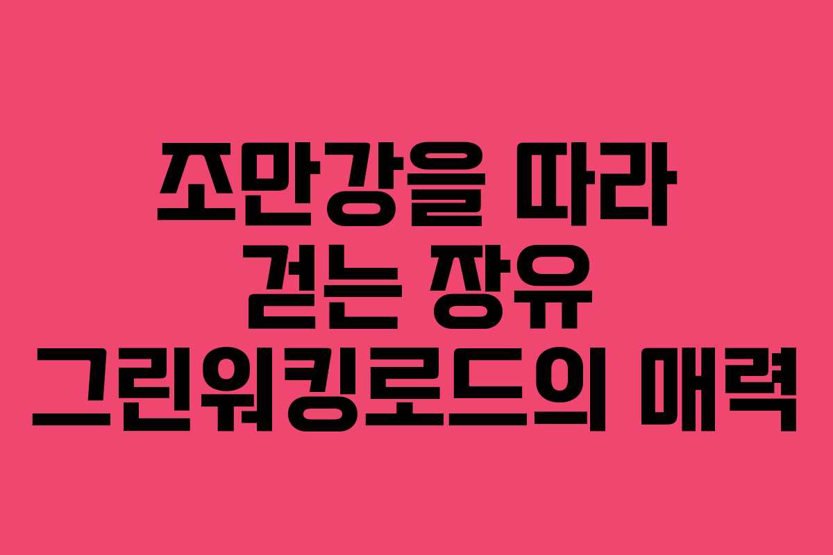장유 그린워킹로드는 자연과 문화가 어우러진 공간에서 체험할 수 있는 특별한 걷기 코스이다. 이 코스는 조만강을 기점으로 하여 대청천 장유폭포수 찜질랜드에서 팔판마을을 거쳐 율하천으로 이어진다. 총 길이는 13.5㎞에 달하며, 이곳은 시민들에게 여유롭게 산책을 즐길 수 있는 장소로 주목받고 있다.