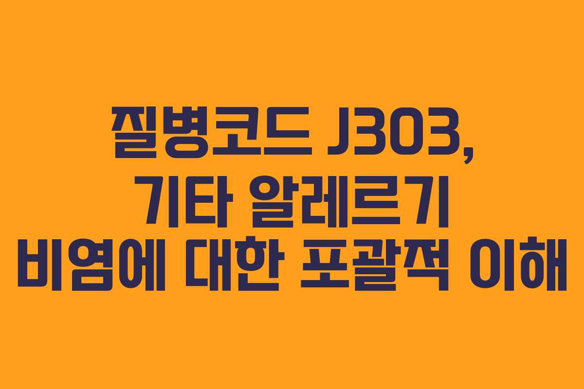 질병코드 J303은 ‘기타 알레르기 비염’을 나타내며, 다양한 알레르기 반응으로 인한 비염을 포괄합니다. 이는 주로 비강의 염증을 유발하고, 재채기나 콧물 등의 증상을 동반하게 됩니다.