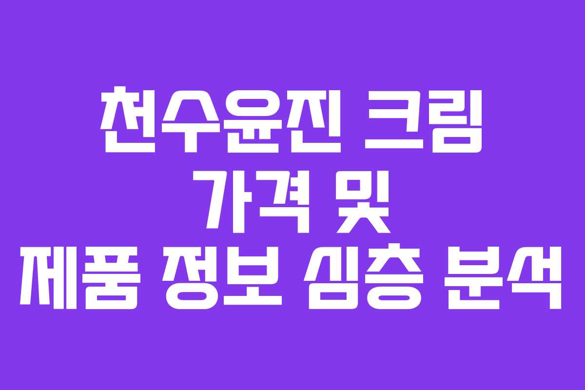 천수윤진 크림은 피부 관리를 중시하는 많은 이들에게 주목받고 있는 제품입니다. 이 제품은 천연 성분을 기반으로 한 혁신적인 화장품으로, 피부에 대한 다양한 효과를 기대할 수 있습니다. 특히, 소나무잎 추출물과 녹용 줄기세포 배양액을 포함하여 프리미엄 제품으로 자리매김하고 있습니다. 본 글에서는 천수윤진 크림의 가격 및 주요 제품에 대한 정보를 심층적으로 살펴보겠습니다.